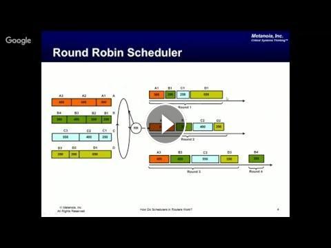 In this video, we explain the workings of some fundamental schedulers, such as Round Robin (RR), Weighted Round Robin (WRR), Generalized Processor Sharing (GPS), Weighted Fair Queueing (WFQ), Deficit Round Robin (DRR), and Weighted Deficit Round Robin (WDRR) through one simple example that we use consistently to explain each one of these.
