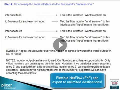 http://www.plixer.com/ Scrutinizer Product Manager, Michael Patterson, provides instructions on how to effectively set up Flexible NetFlow on supported Cisco routers and switches. What is Flexible NetFlow? How do you "turn it on" to collect and report on details like MAC address, VLAN ID, NBAR, etc.? Watch to find out!