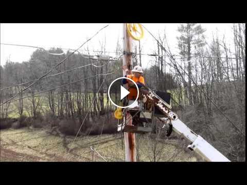 Jameson Aerial Buddy used by JBL Communications during installation of ADSS fiber optic cable in Mountain City, TN. Installers were impressed by cable capture that prevented pull line or cable from jumping off wheel, light weight, and durability.