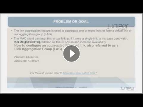 This video demonstrates the steps necessary to configure a Link Aggregation Group or LAG on an EX Series device. Through the use of screencaptures and text, this video will show how to create and verify a LAG.