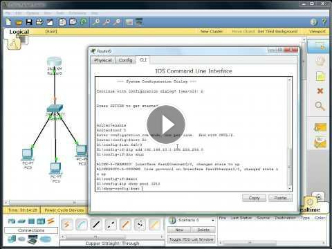 This is a setup of 1 Router, 1 Switch, and 3 Computers. Then they are configured to use DHCP from the router to connect all computers attached to the switch.