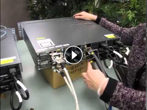 Denise demonstrates how to unpack and interconnect the components of two stacked Cisco 3750X switches.